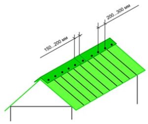 Крепление «ветровой» планки осуществляется саморезами с шагом 200-300 мм с поперечным нахлестом между планками 100-150 мм.