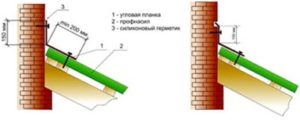 Угловая планка при поперечном примыкании к стене крепится с шагом 200…300 мм и с нахлестом между планками 150 мм.