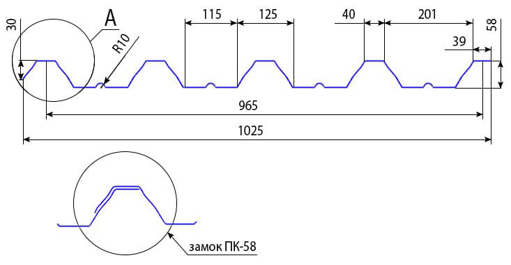 Розміри профнастилу ПК-58
